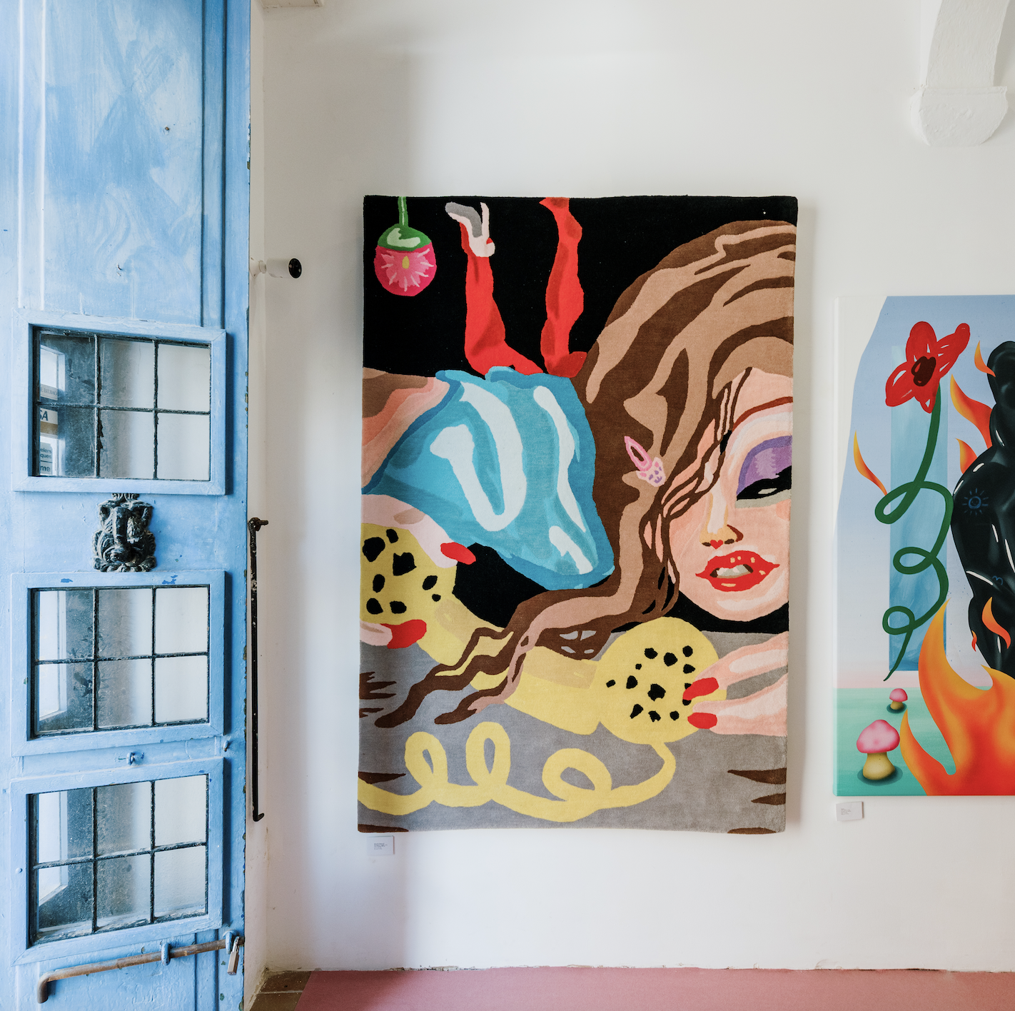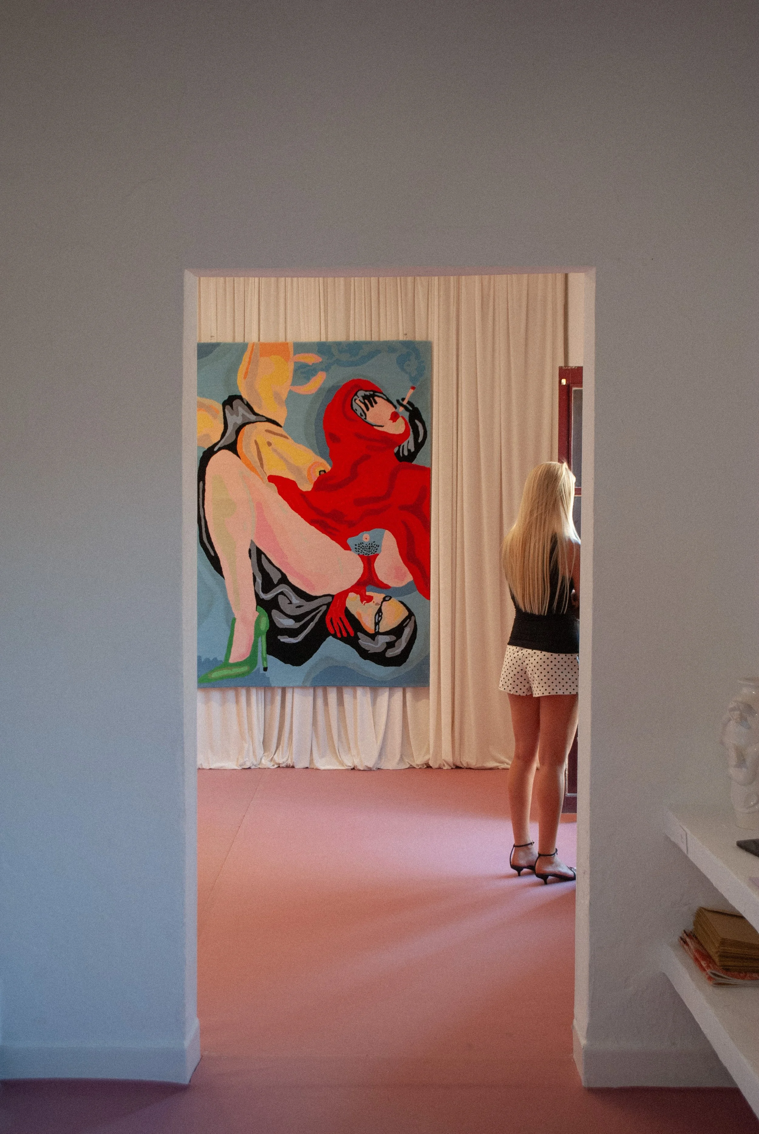 Makaroff's work moves between the theatrical and playful nature of the external world, and the solemnity of the inner world. With dynamism, she seeks the truth, delves into the visceral, observes the darkness, listens to the silence, and embraces fear. She openly celebrates women while exploring a visual universe without restrictions or preconceived principles, giving rise to a diverse, vibrant palette laced with ironic humor.