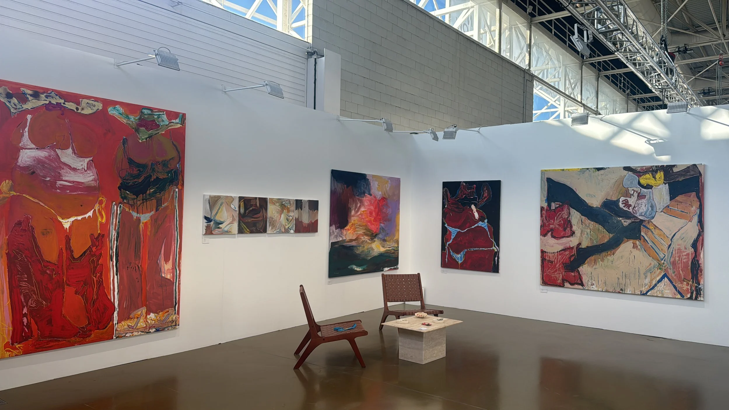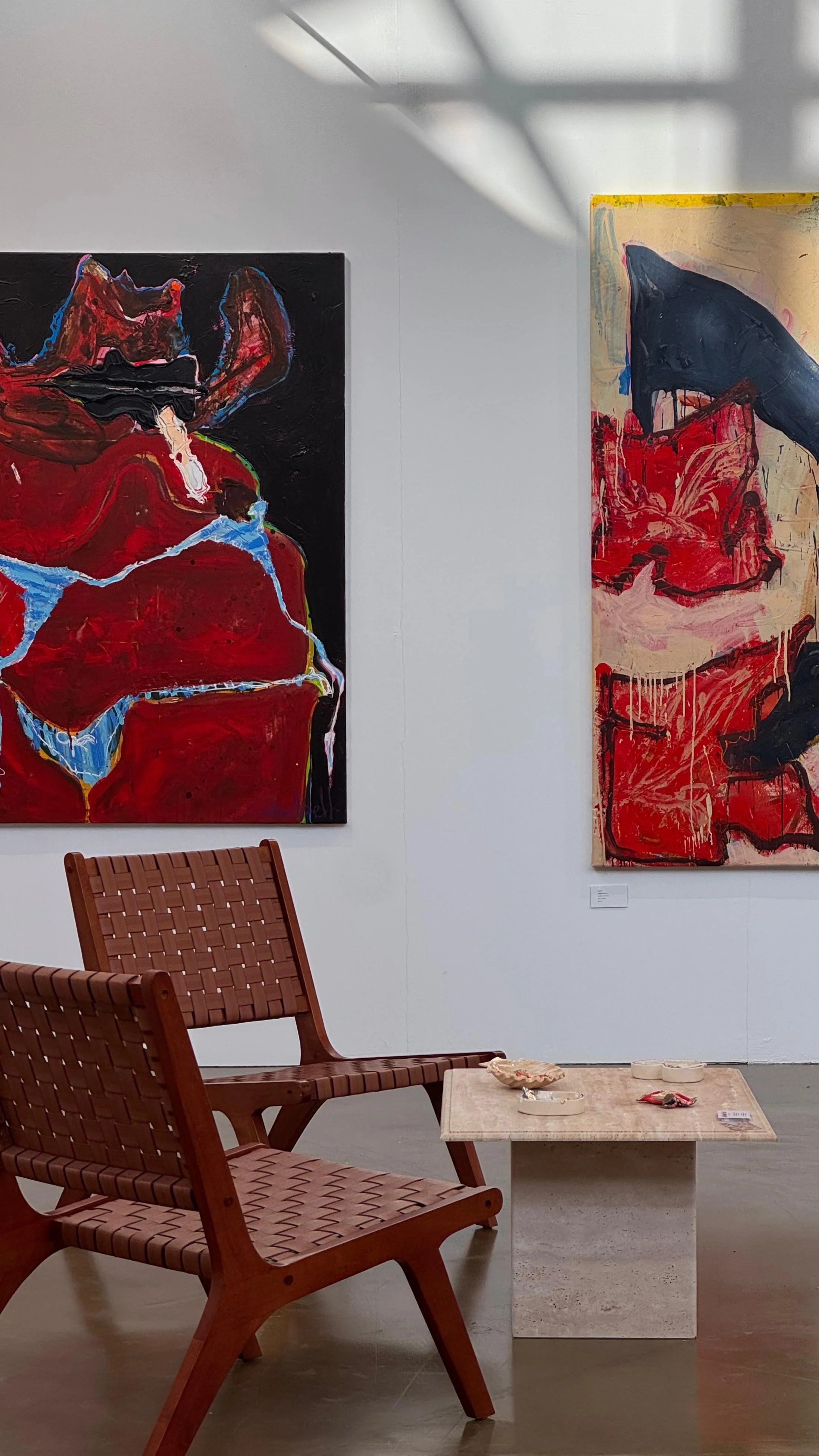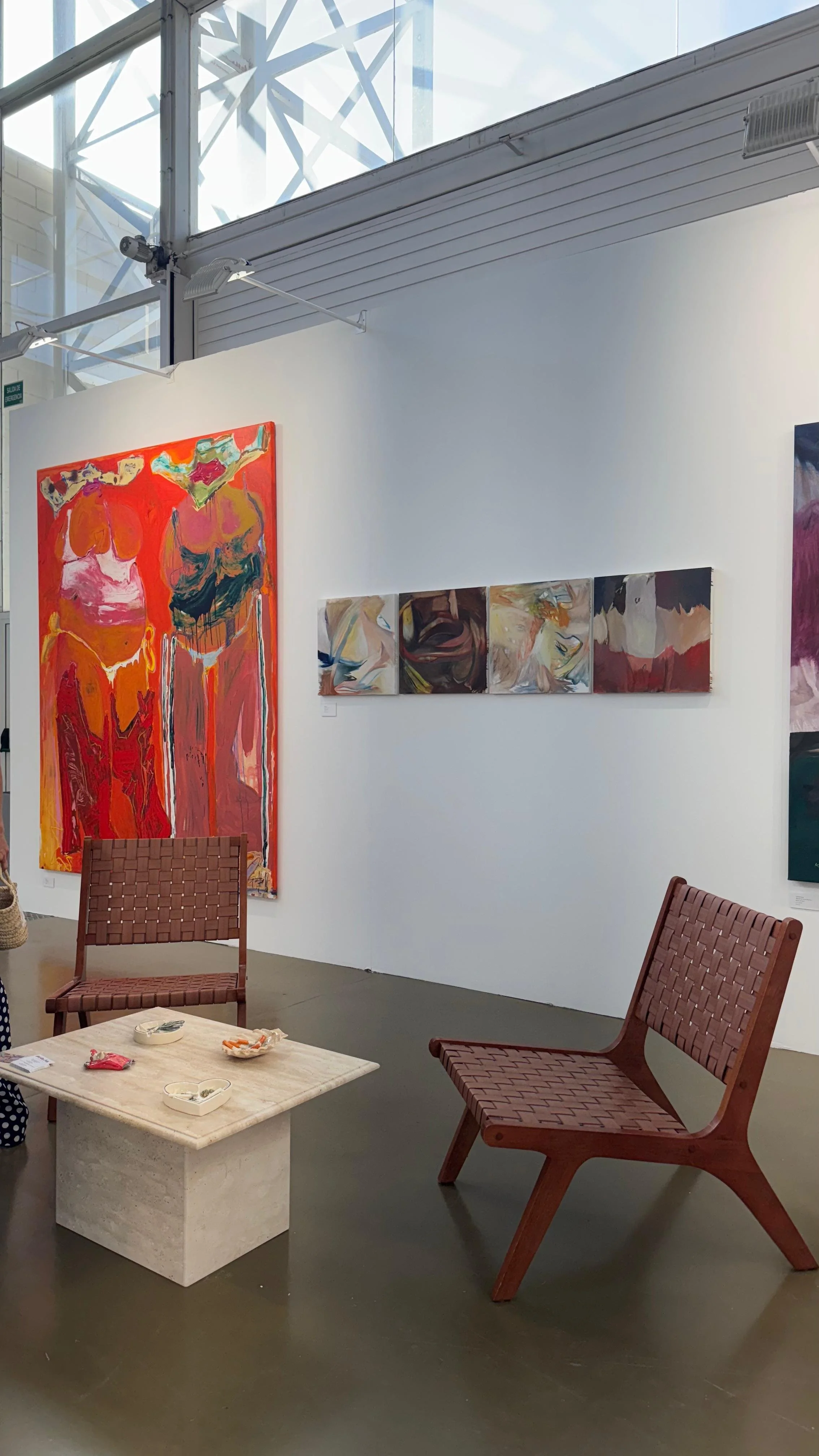 Finally, Karimah Hassan!s large-scale abstract paintings were created during a winter residency in Dalt Vila. Her work draws from her heritage and background in architecture, merging personal memory with sensory impressions of Ibiza!s light, energy, and environment. This recent series marks a shift toward deeper abstraction and larger scale for her.