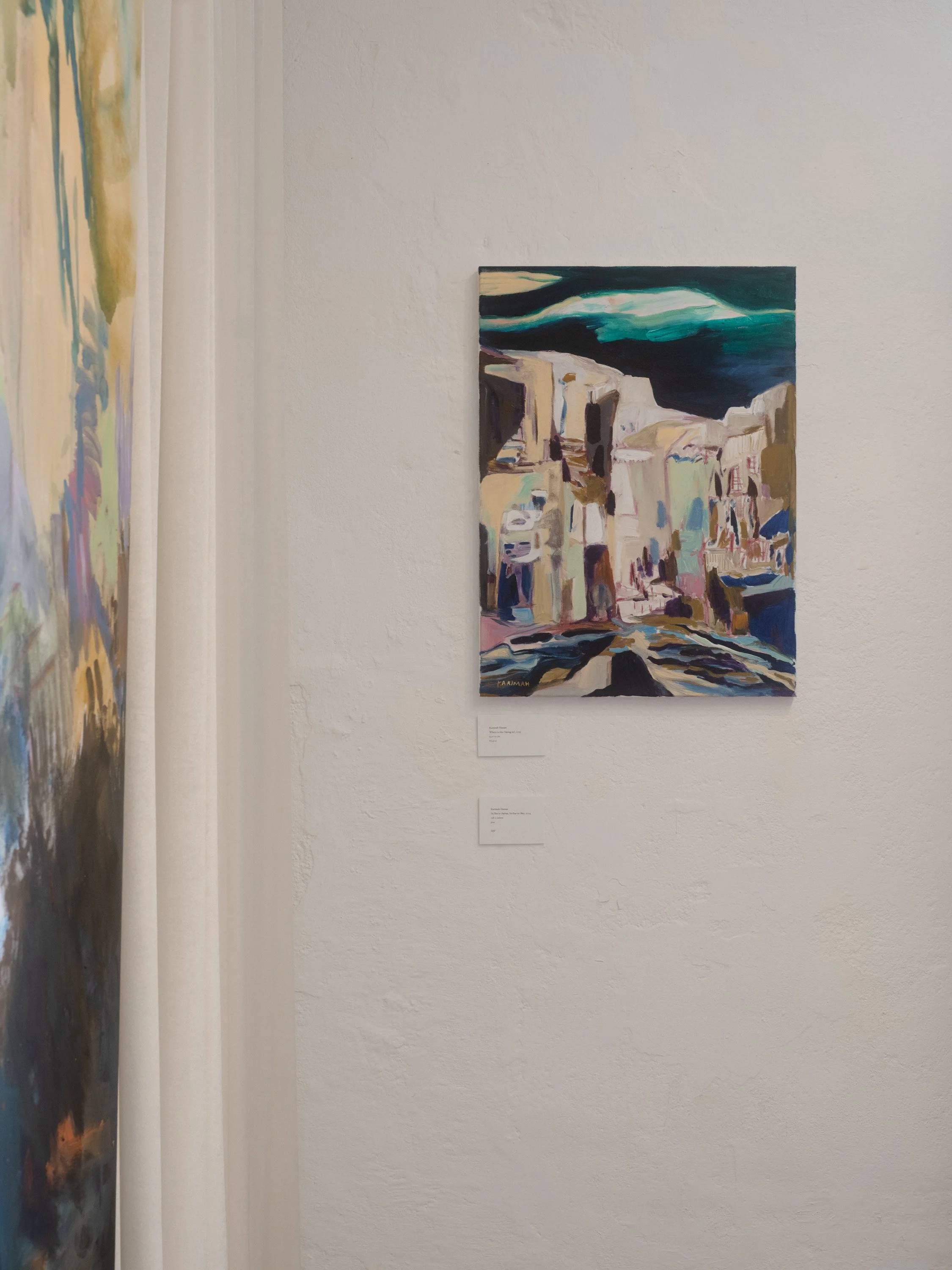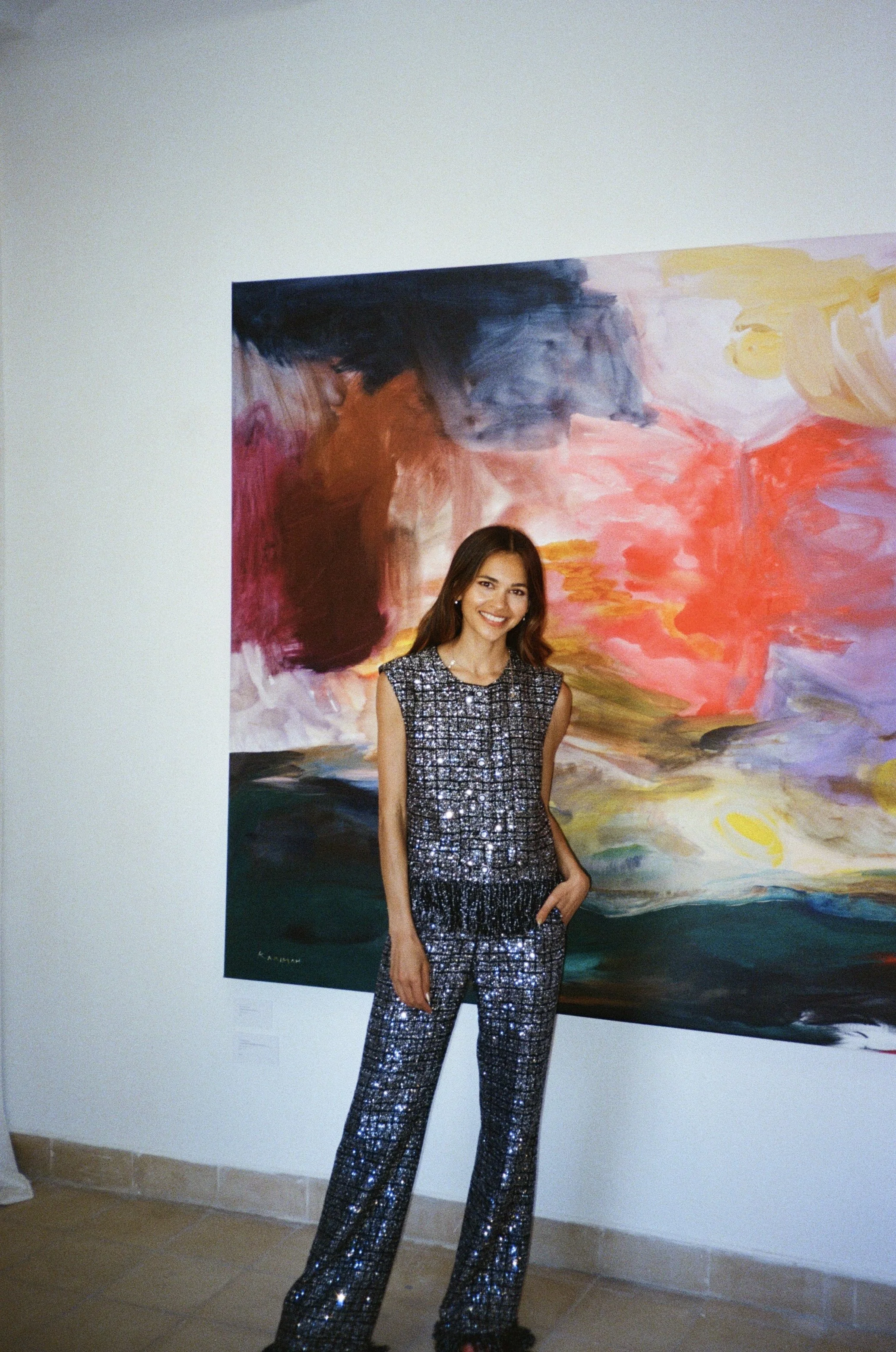 The series celebrates the emotive power of colour and scale, drawing viewers into vast, otherworldly spaces. “Now more than ever, we need to keep imagining and dreaming,” Karimah says. Through her paintings, she captures Ibiza as a place of transformation, creativity, and healing — a magnet for artists and dreamers alike.