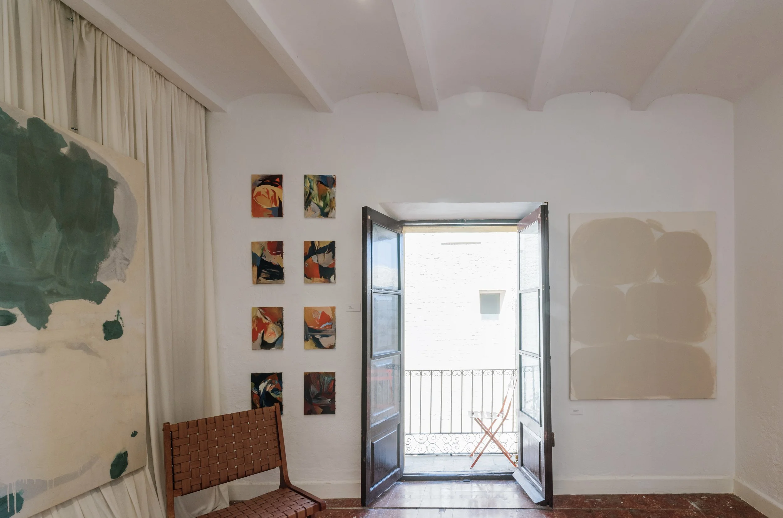 Both working surrounded by the Island’s nature, in Ibiza, suspended between sea and sky, both made of endless blue, from which these paintings emerge.